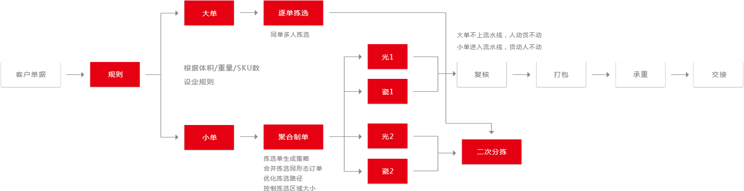 訂單分類,不同訂單類型匹配不同的下架和復(fù)核流程。提高復(fù)核效率、降低發(fā)貨錯誤。