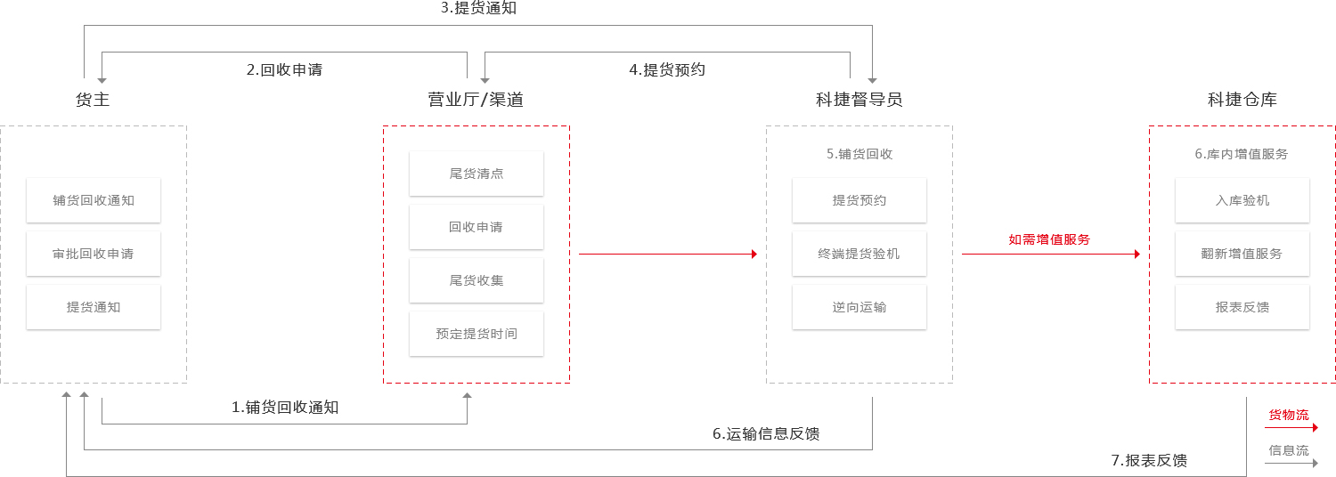 科捷物流為客戶提供演示機(jī)回收、鋪貨回收、消退回收、拒收回收、維修機(jī)回收返回中心倉/省倉/地級市倉、營業(yè)廳/渠道調(diào)撥的逆向物流服務(wù),并在提貨終端提供貨品質(zhì)檢、序列號校驗(yàn)、更換配件和外包裝、軟件升級等增值服務(wù)。