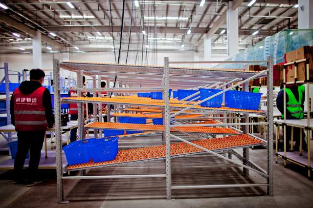 科捷武清旗艦倉(cāng)內(nèi)流利式傳送帶高效銜接