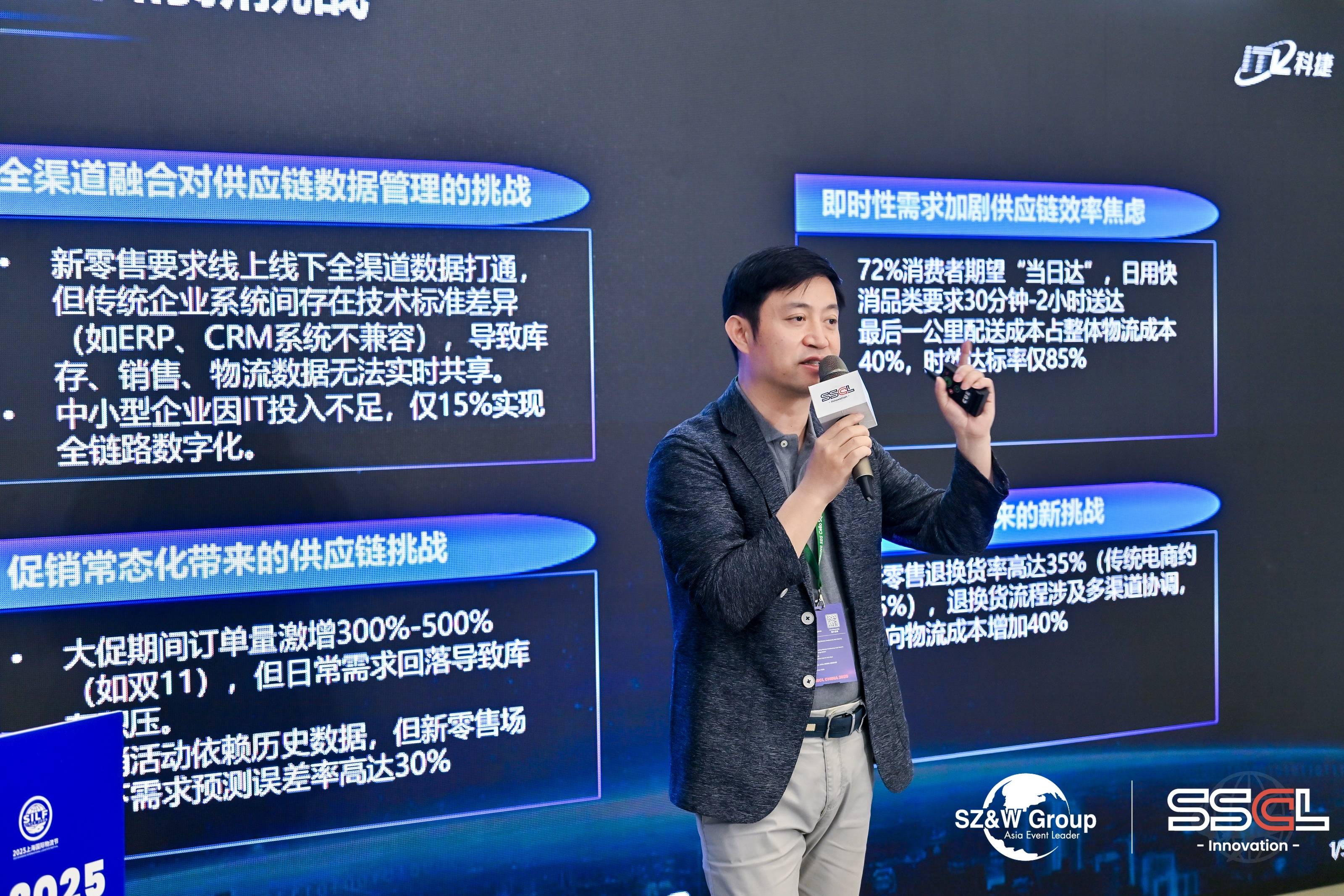 在本次活動(dòng)上,神州控股科捷營(yíng)銷副總經(jīng)理夏旭做了題為《訂單高彈性比的供應(yīng)鏈應(yīng)對(duì)方案》的主題報(bào)告。目前,“6.18”電商大促活動(dòng)正在各大電商平臺(tái)展開(kāi),這份報(bào)告可謂正當(dāng)其時(shí)??平菀堰B續(xù)15年在“雙11”大促中取得令客戶滿意的成績(jī),在同類企業(yè)中唯一一家達(dá)成這一成就,大促應(yīng)對(duì)經(jīng)驗(yàn)十分豐富。公司通過(guò)核心技術(shù)驅(qū)動(dòng)和持續(xù)的微創(chuàng)新,打造了“快、準(zhǔn)、好、省”的服務(wù)模式。在“快”的方面,科捷實(shí)現(xiàn)了發(fā)貨和全鏈路時(shí)效的歷史性突破,通過(guò)倉(cāng)端的預(yù)包、半包結(jié)合及全鏈路節(jié)點(diǎn)管控,以及配端的預(yù)包下沉、預(yù)售下沉和獨(dú)立分撥等創(chuàng)新措施,助力電商店鋪獲得DSR5分評(píng)級(jí)?!皽?zhǔn)”字體現(xiàn)在減少錯(cuò)漏發(fā)和提高發(fā)貨準(zhǔn)確率上,科捷通過(guò)建立正向發(fā)貨全鏈路可視化系統(tǒng),投入大量硬件和軟件升級(jí),成功將錯(cuò)漏發(fā)反饋率降低了50%。在提升“好”的體驗(yàn)方面,科捷優(yōu)化系統(tǒng)流程,推出“一鍵攔截”快速退貨功能,實(shí)現(xiàn)商家、科捷和快遞的信息實(shí)時(shí)互通,自動(dòng)攔截觸發(fā)退款,大幅提升消費(fèi)者退貨退款好評(píng)率。至于“省”的成本控制層面,科捷進(jìn)一步降低物流成本,通過(guò)對(duì)箱型設(shè)計(jì)和使用的優(yōu)化降低包材采購(gòu)成本和資金占用,同時(shí)引入經(jīng)濟(jì)倉(cāng)模式,成功使包材成本下降10%。