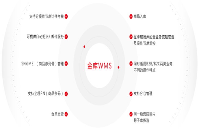 科捷結(jié)合十余年運(yùn)營經(jīng)驗(yàn)自主研發(fā)的金庫倉儲管理系統(tǒng)(簡稱金庫WMS),精準(zhǔn)匹配多行業(yè)品牌客戶倉內(nèi)業(yè)務(wù)特征,完美貼合品牌客戶倉庫管理個(gè)性化需求,幫助眾多知名客戶實(shí)現(xiàn)了對倉庫全流程的智能高效管理。功能涵蓋商品入庫、在庫和出庫的全業(yè)務(wù)流程管理及操作節(jié)點(diǎn)監(jiān)控,同時(shí)適用B2B/B2C兩類業(yè)務(wù)不同的操作特點(diǎn),支持分倉管理、同一物流園區(qū)內(nèi)跨子庫揀選、合單發(fā)貨,支持全程PN(商品條碼)、SN/IMEI (商品序列號)管理,支持分操作節(jié)點(diǎn)計(jì)件考核,可提供自動短信/ 郵件服務(wù)。金庫WMS系統(tǒng)與客戶業(yè)務(wù)高度匹配,智能高效地幫助客戶管理倉庫。