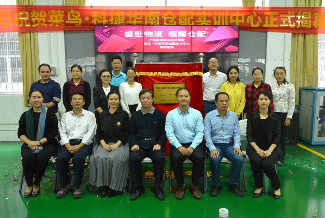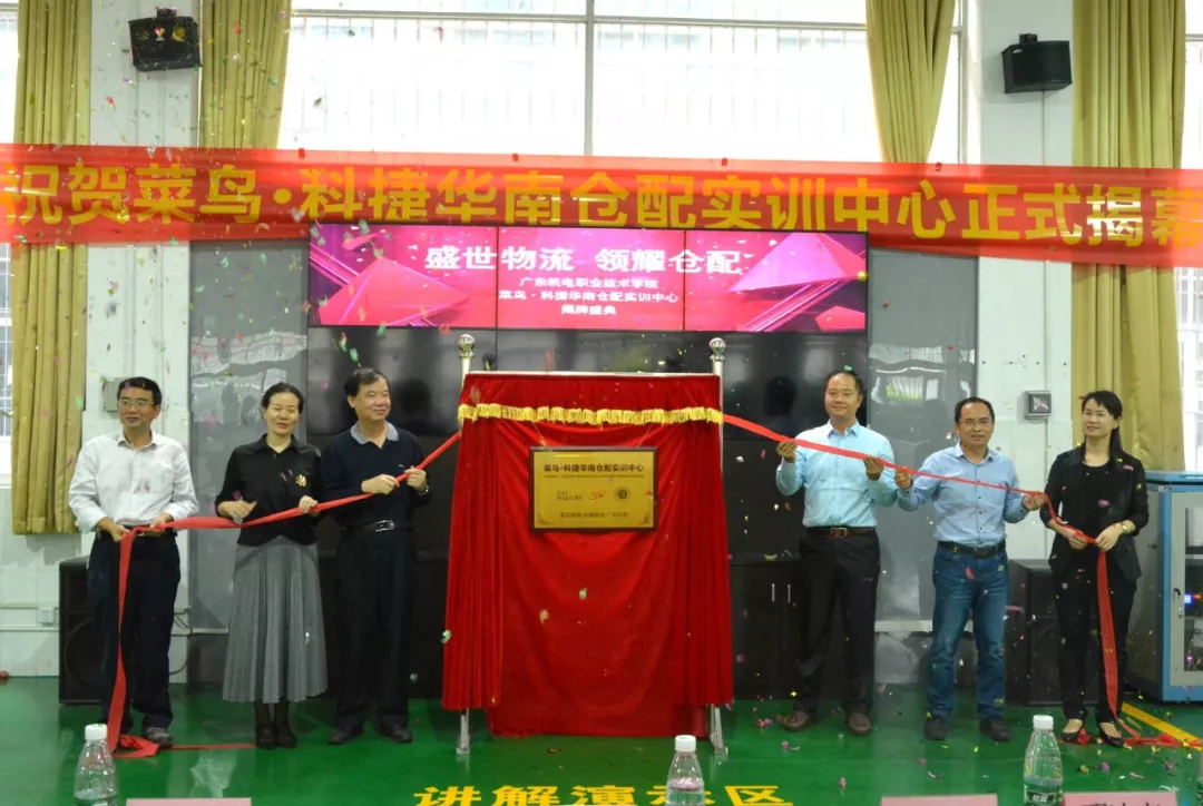 科捷物流南區(qū)總經理胡紅與校方代表及菜鳥網絡代表共同為“菜鳥·科捷華南倉配實訓中心”揭牌。