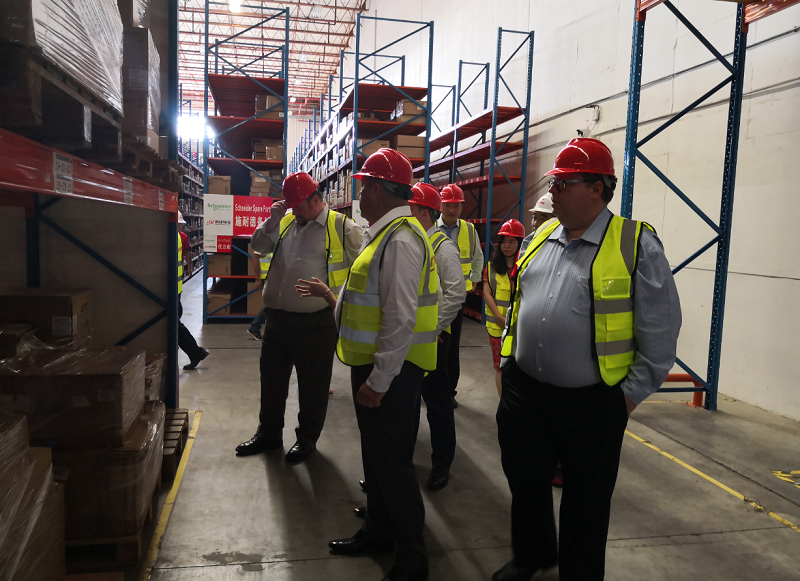 2018年8月28日,施耐德全球高級(jí)副總裁Stuart Whiting一行參觀考察了科捷物流上海倉(cāng)。科捷物流KBD事業(yè)部總經(jīng)理韓振宇、大客戶部總監(jiān)李國(guó)強(qiáng)、客戶經(jīng)理郭松松參與全程接待。