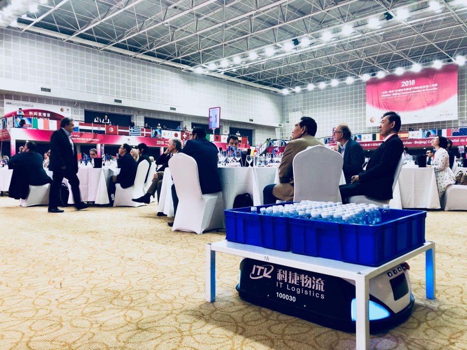 就是在這樣的世界級(jí)盛會(huì)上,科捷將其在武清機(jī)器人倉(cāng)應(yīng)用的“人機(jī)共舞”方案成功的應(yīng)用到了其他場(chǎng)景中。大賽期間,正如在倉(cāng)儲(chǔ)里機(jī)器人代替人工跑腿,科捷的機(jī)器人將扮演“侍酒小助手”的角色,為現(xiàn)場(chǎng)各位評(píng)委及嘉賓提供服務(wù)。
