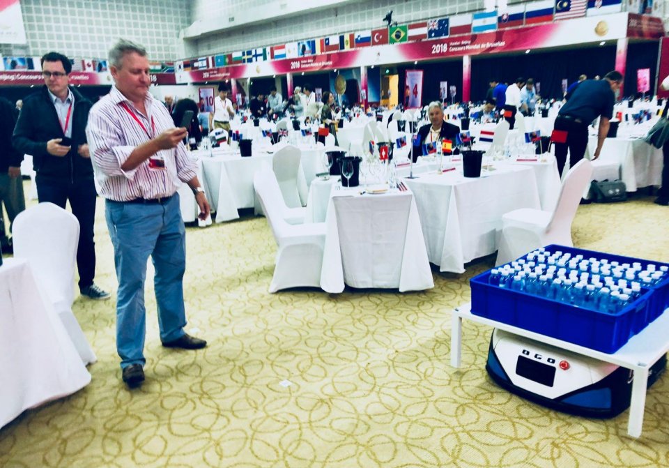 2018(北京?海淀)比利時(shí)布魯塞爾國(guó)際葡萄酒大獎(jiǎng)賽于5月10日-13日在北京稻香湖景酒店舉辦,來(lái)自50余個(gè)國(guó)家和地區(qū)近400名評(píng)委(其中國(guó)外評(píng)委330名)參會(huì),參賽酒款達(dá)9180余款。評(píng)委的覆蓋面、參賽樣品數(shù)量均達(dá)到歷史新高??平菸锪髯鳛楹5韰^(qū)在人工智能領(lǐng)域做出突出貢獻(xiàn)的杰出企業(yè)之一,應(yīng)海淀區(qū)政府邀請(qǐng)為此次大賽現(xiàn)場(chǎng)提供機(jī)器人智能解決方案。