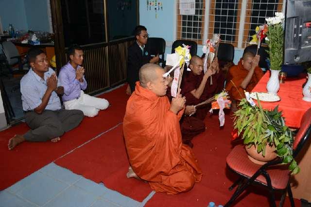 此次開(kāi)倉(cāng)儀式入鄉(xiāng)隨俗,采用緬式慶典形式--宋干(音同)舉行。緬甸是個(gè)全民信佛的國(guó)家,佛教氛圍濃厚,處處可見(jiàn)佛塔,人民樸實(shí)友善。此次開(kāi)倉(cāng)更是請(qǐng)來(lái)了當(dāng)?shù)刂畬W(xué)院馬哈伽納揚(yáng)的高僧祈福做法。馬哈伽納揚(yáng)是緬甸最大的僧學(xué)院,在這里進(jìn)修的僧侶數(shù)量過(guò)千,也被稱(chēng)作“千人僧院”。