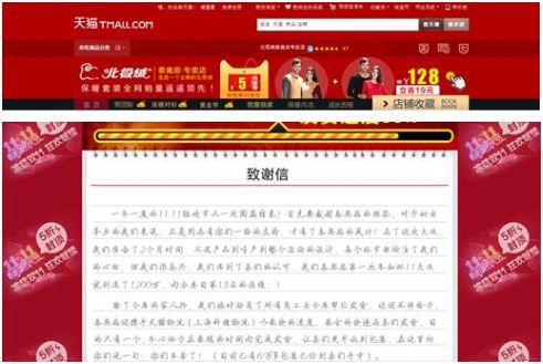北極絨在天貓?zhí)W菲專賣店首頁公開發(fā)表了致謝信