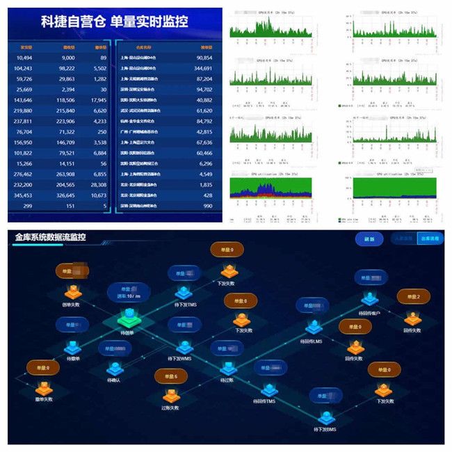 科捷專門為雙十一開發(fā)的KingKooData系統(tǒng)數(shù)據(jù)流監(jiān)控,對訂單流入到系統(tǒng)后的各操作節(jié)點(diǎn)待流轉(zhuǎn)數(shù)據(jù)可進(jìn)行實(shí)時(shí)監(jiān)控。就好比監(jiān)控一條大河和分支的小河,河道哪里有堵塞,是發(fā)貨后回傳客戶系統(tǒng)慢還是下發(fā)TMS有堵塞,在監(jiān)控上都能一目了然的觀察到。通過KingKooData數(shù)據(jù)流的監(jiān)測,技術(shù)人員可以及時(shí)發(fā)現(xiàn)與客戶系統(tǒng)接口是否有異常,及時(shí)聯(lián)系到客戶處理。也能提醒客戶經(jīng)理和倉儲(chǔ)管理者,哪些單據(jù)因?yàn)椴僮鞑煌暾麑?dǎo)致了單據(jù)滯留未往下一個(gè)環(huán)節(jié)流轉(zhuǎn)。日常和雙十一大促期間,通過這個(gè)工具實(shí)時(shí)觀察數(shù)據(jù)流,起到了數(shù)據(jù)防呆的作用,確保了每一單數(shù)據(jù)都能正常流轉(zhuǎn)。